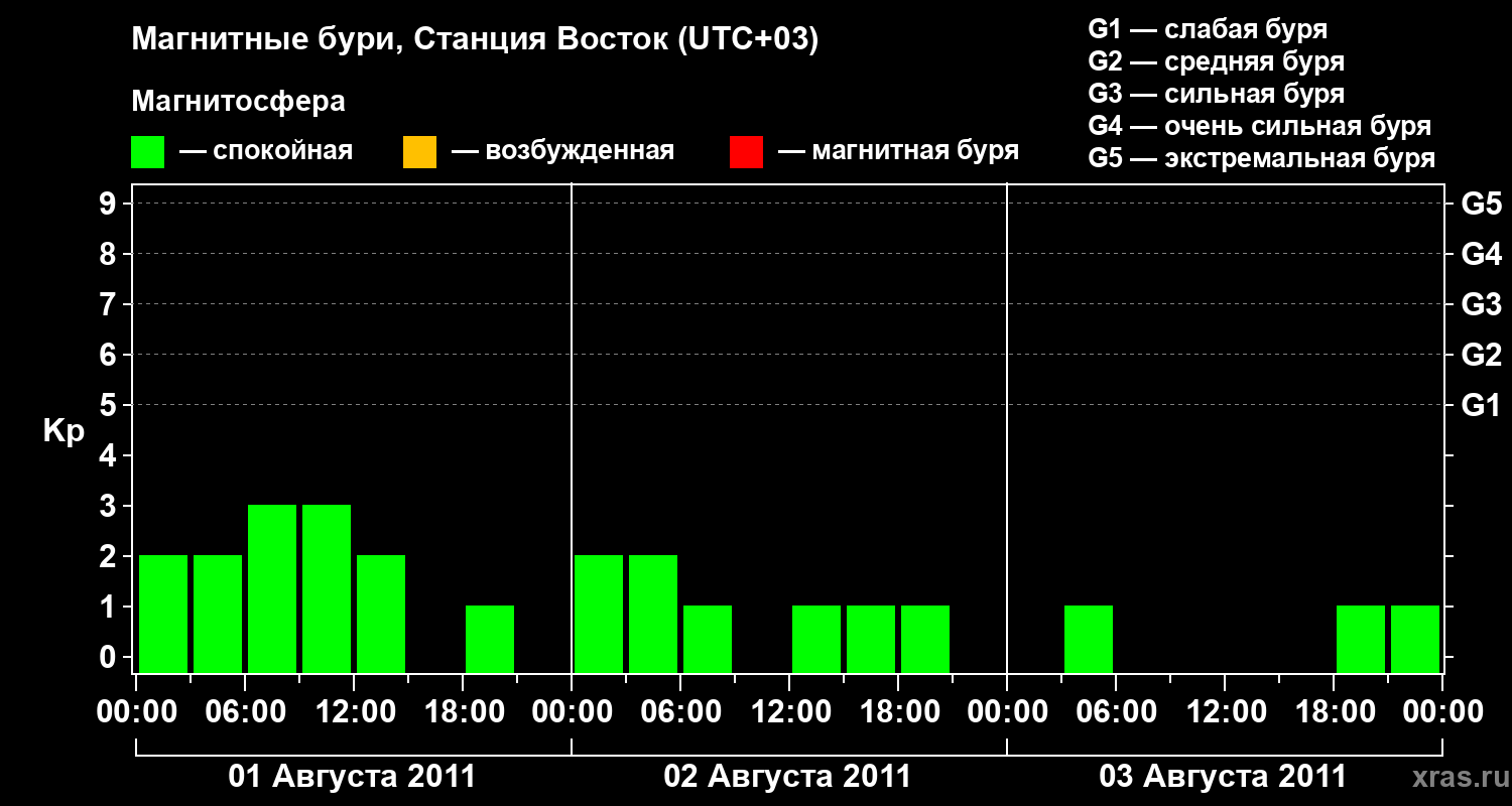 Магнитные бури локации Станция Восток — 3 августа 2011 года