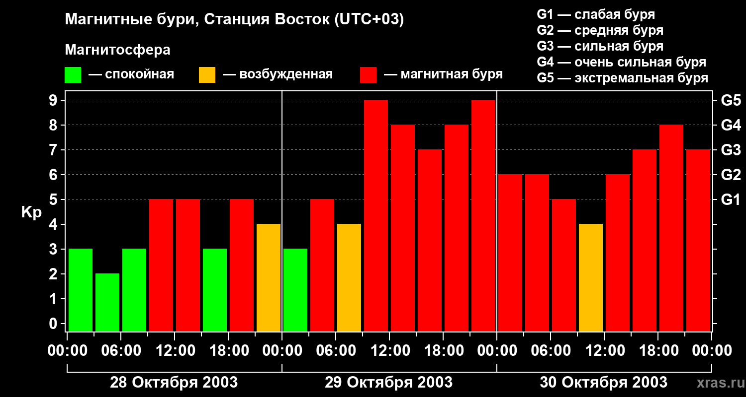 Магнитные бури локации Станция Восток 30 октября 2003 года