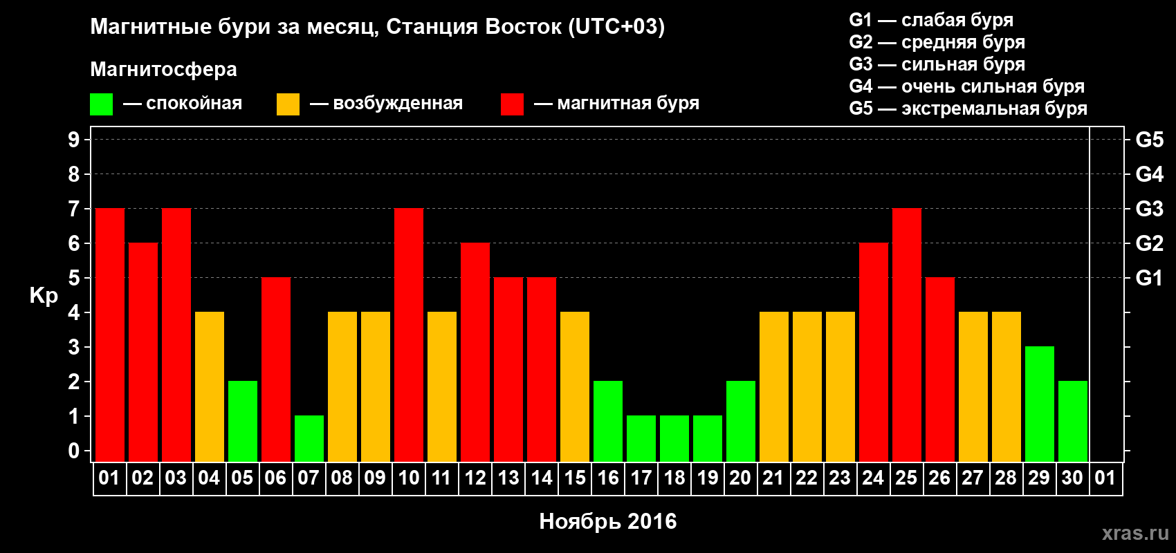 Магнитные бури локации Станция Восток в ноябре 2016 года