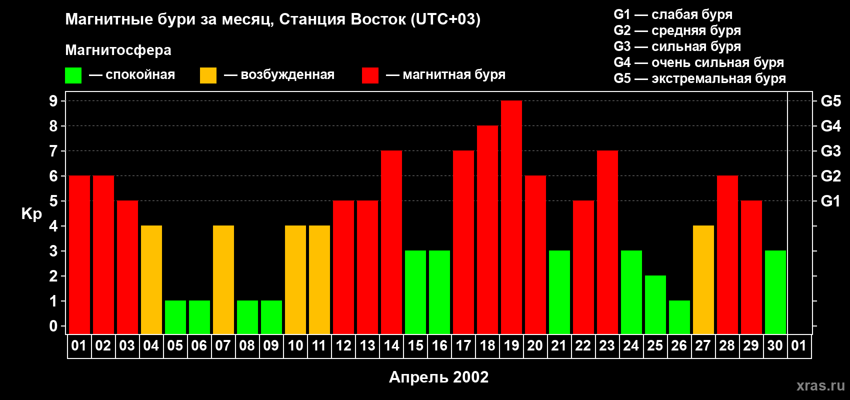 Магнитные бури локации Станция Восток в апреле 2002 года