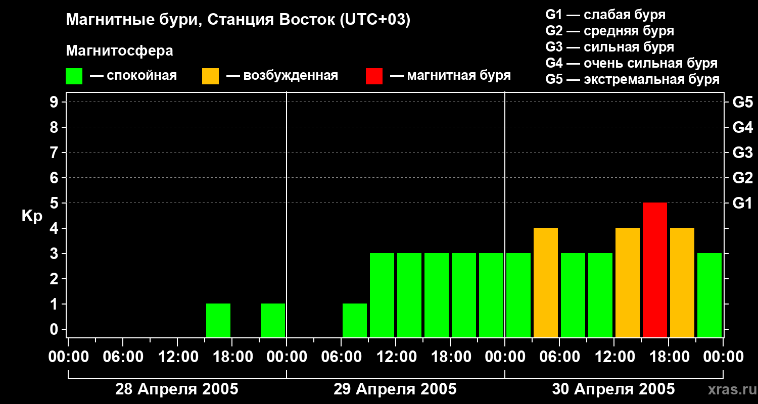 Магнитные бури локации Станция Восток — 30 апреля 2005 года