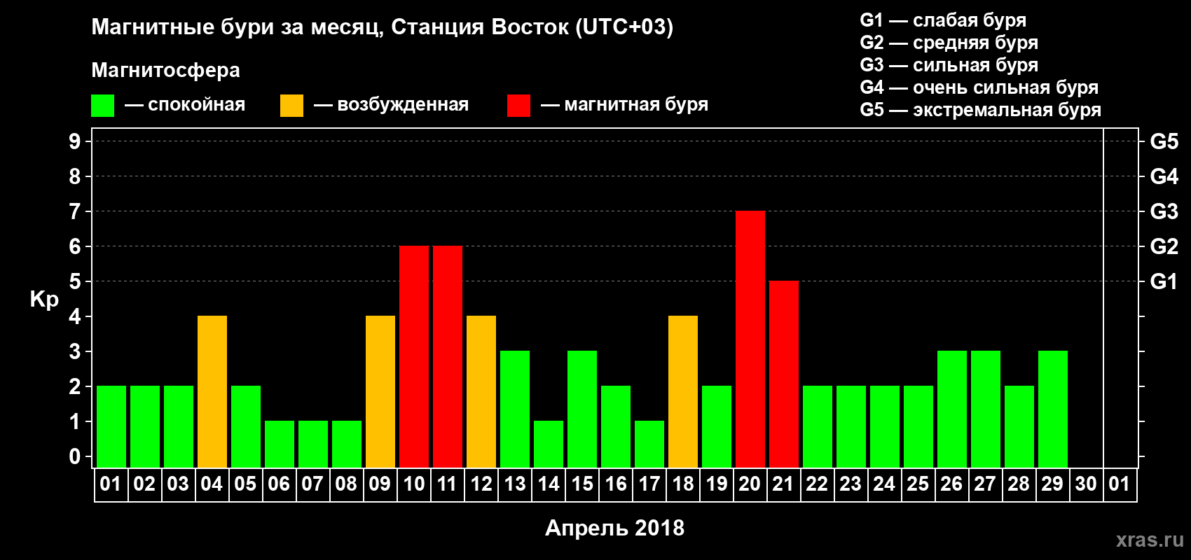 Магнитные бури локации Станция Восток — 30 апреля 2018 года