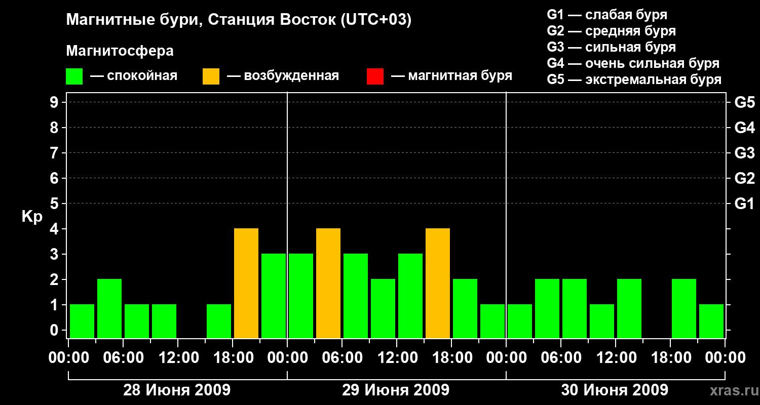 Магнитные бури локации Станция Восток 30 июня 2009 года