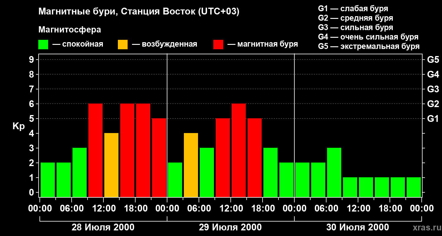 Магнитные бури локации Станция Восток — 30 июля 2000 года