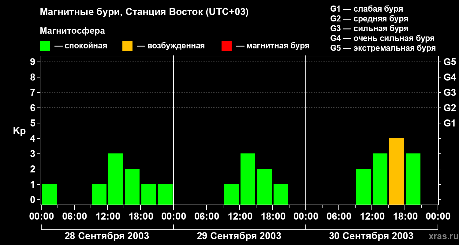 Магнитные бури локации Станция Восток в сентябре 2003 года