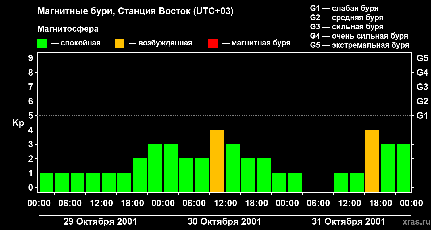 Магнитные бури локации Станция Восток 31 октября 2001 года