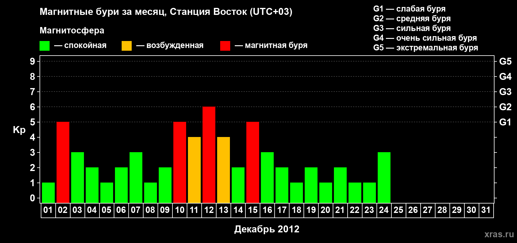 Магнитные бури локации Станция Восток в декабре 2012 года