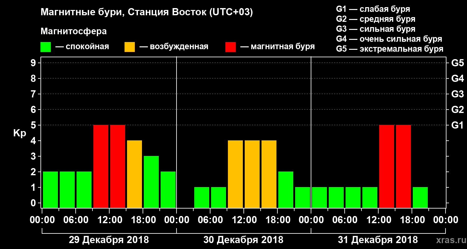 Магнитные бури локации Станция Восток 31 декабря 2018 года