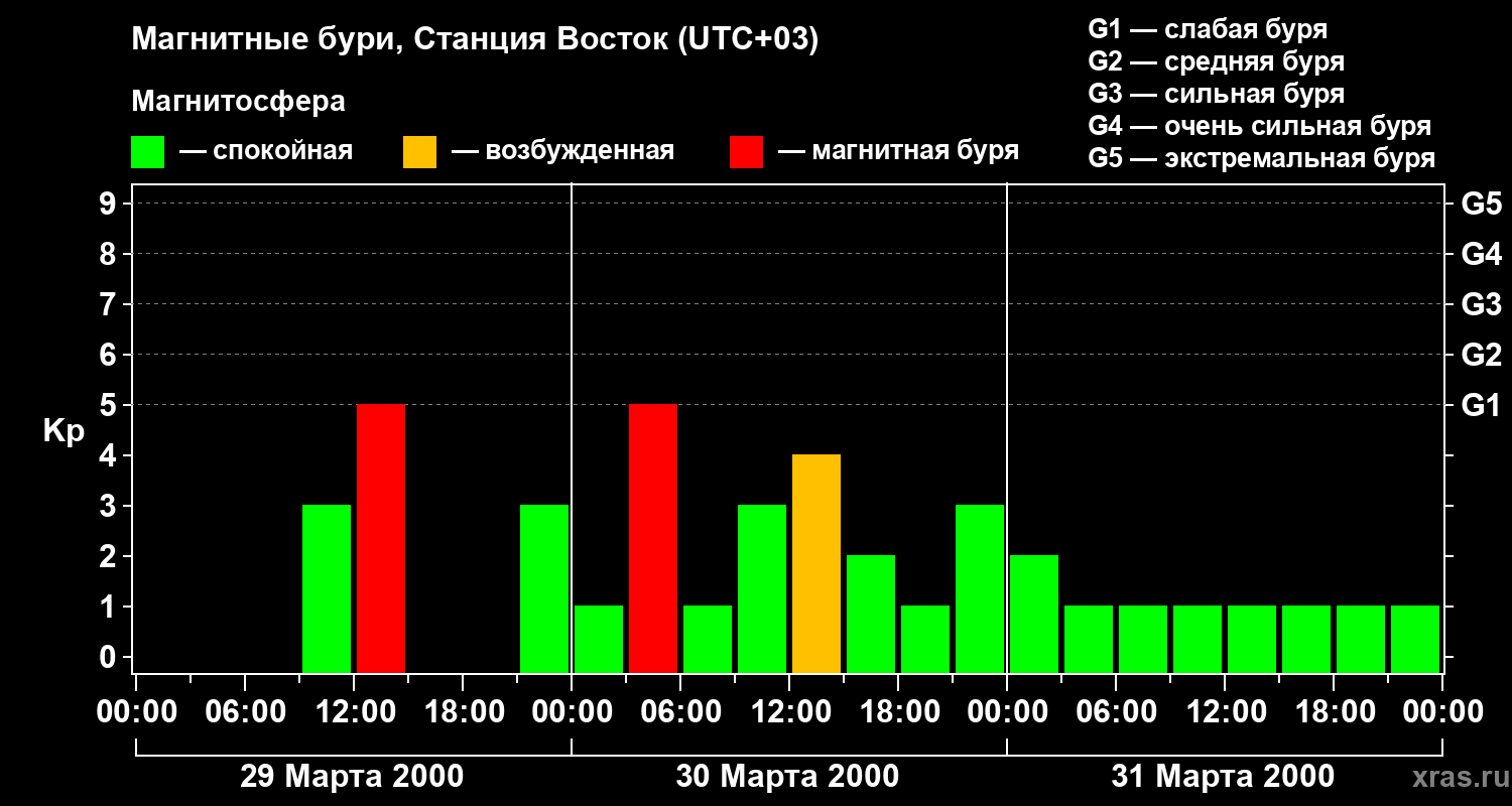 Магнитные бури локации Станция Восток 31 марта 2000 года