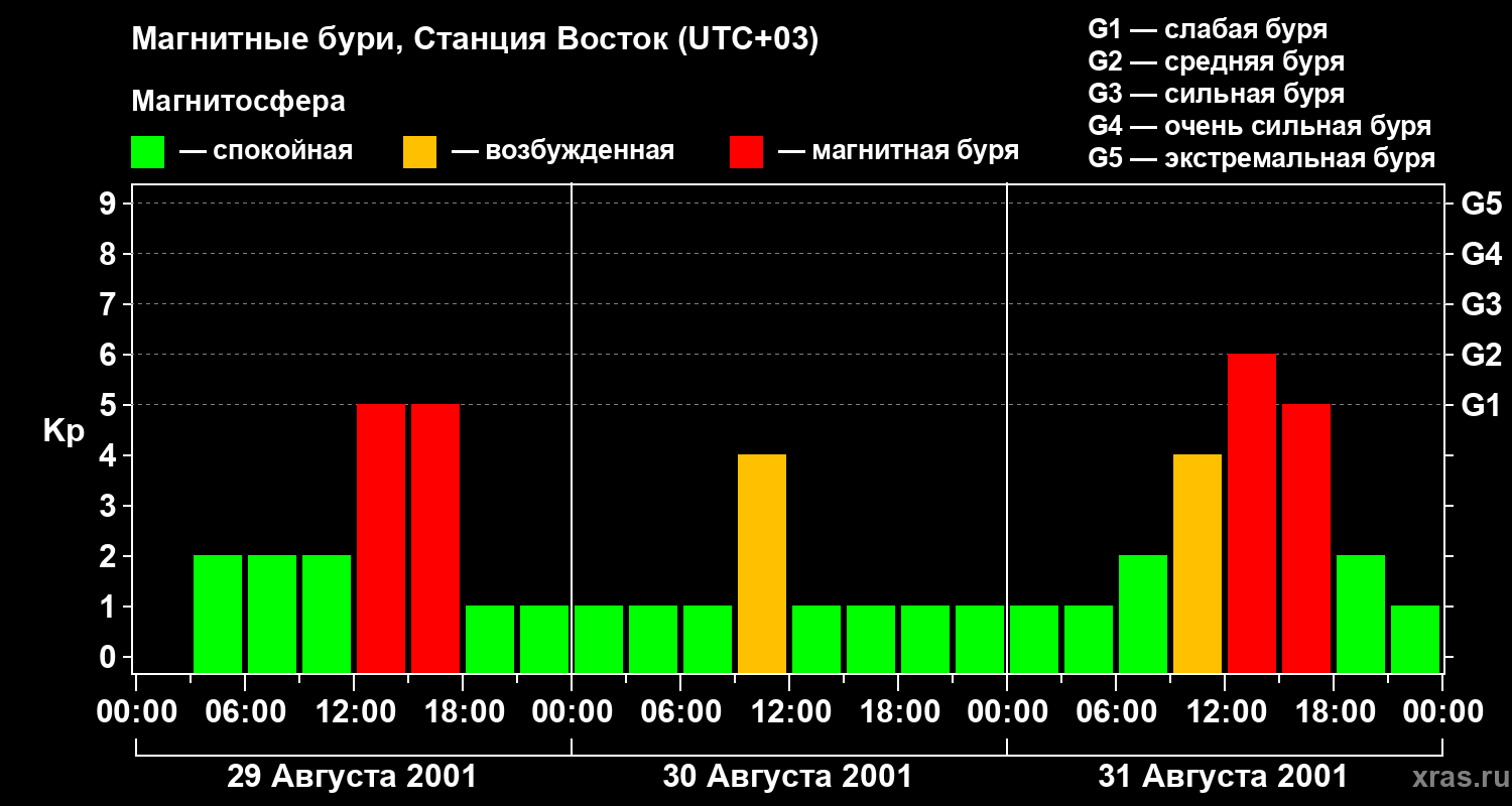 Магнитные бури локации Станция Восток — 31 августа 2001 года