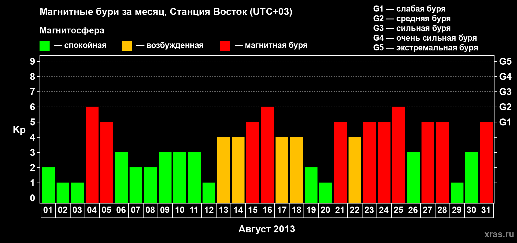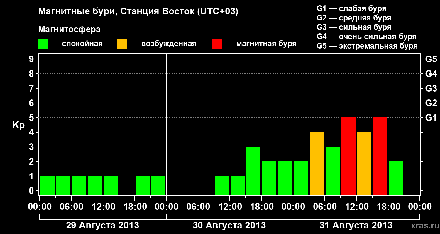 Магнитные бури локации Станция Восток — 31 августа 2013 года