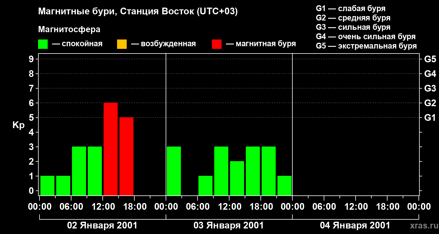 Магнитные бури локации Станция Восток — 4 января 2001 года