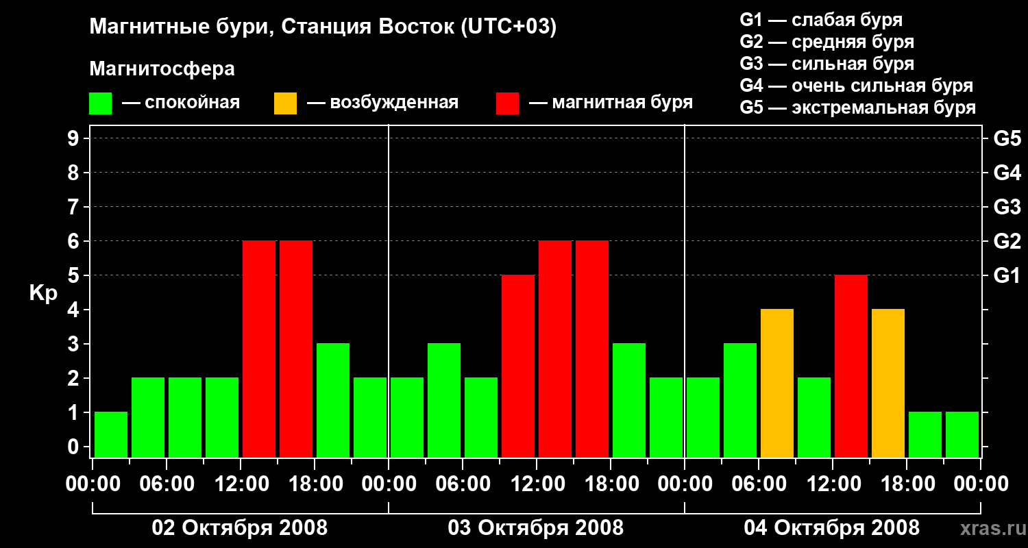 Магнитные бури локации Станция Восток — 4 октября 2008 года