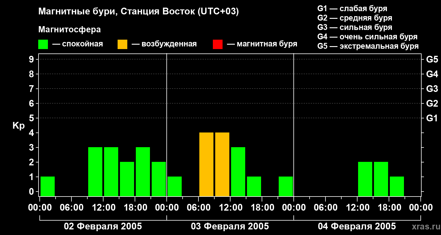 Магнитные бури локации Станция Восток — 4 февраля 2005 года