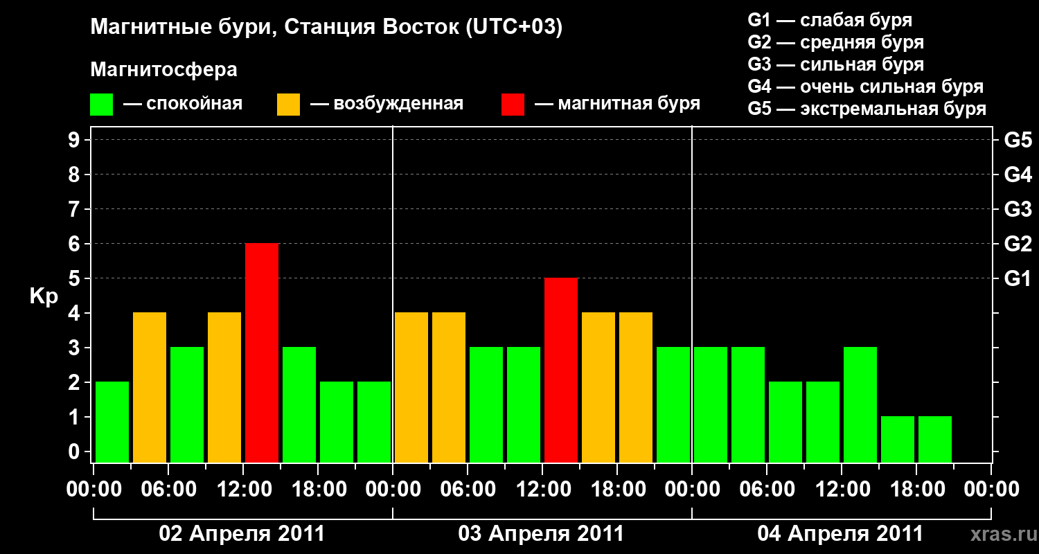 Магнитные бури локации Станция Восток 4 апреля 2011 года