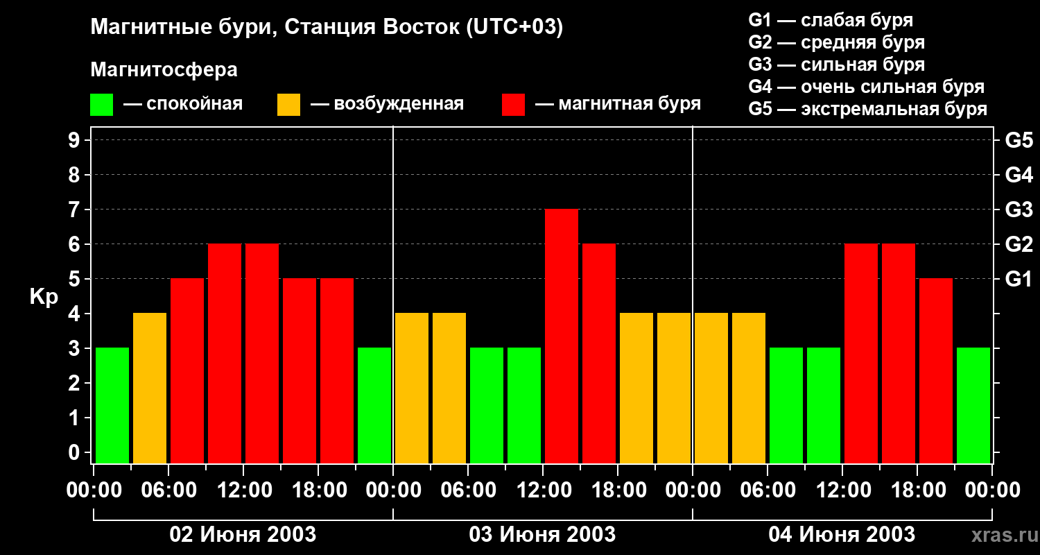 Магнитные бури локации Станция Восток 4 июня 2003 года