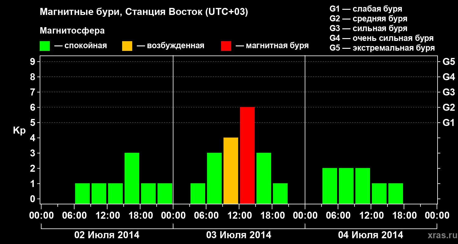 Магнитные бури локации Станция Восток — 4 июля 2014 года