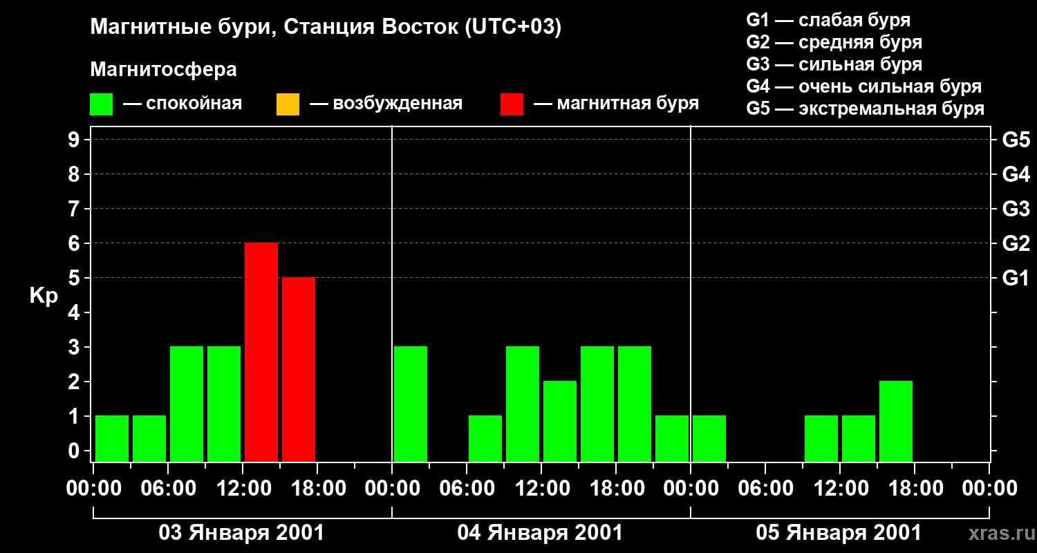Магнитные бури локации Станция Восток — 5 января 2001 года
