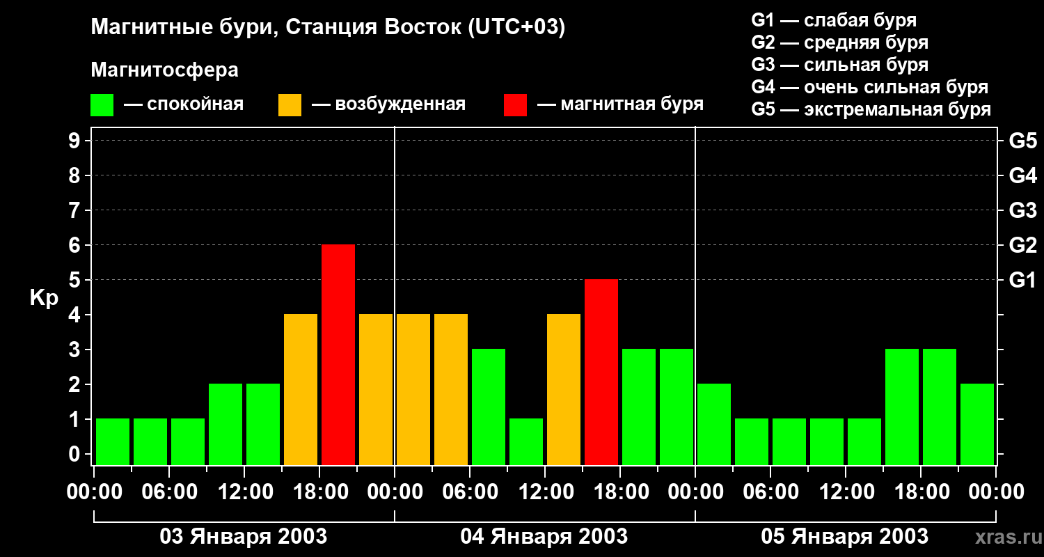 Магнитные бури локации Станция Восток — 5 января 2003 года