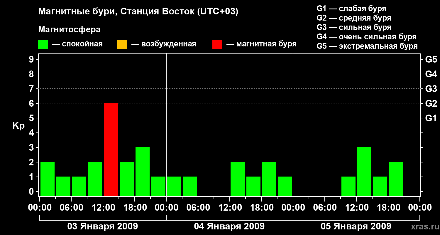 Магнитные бури локации Станция Восток — 5 января 2009 года