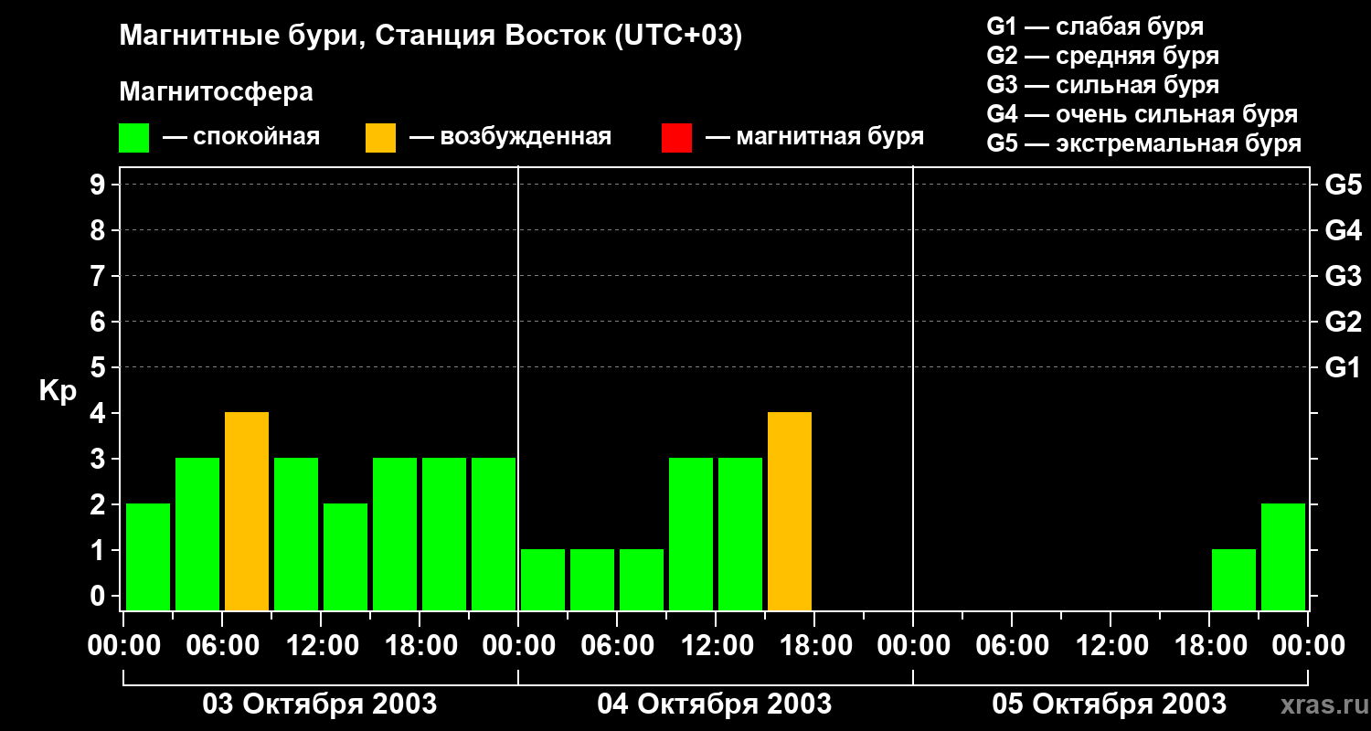 Магнитные бури локации Станция Восток — 5 октября 2003 года