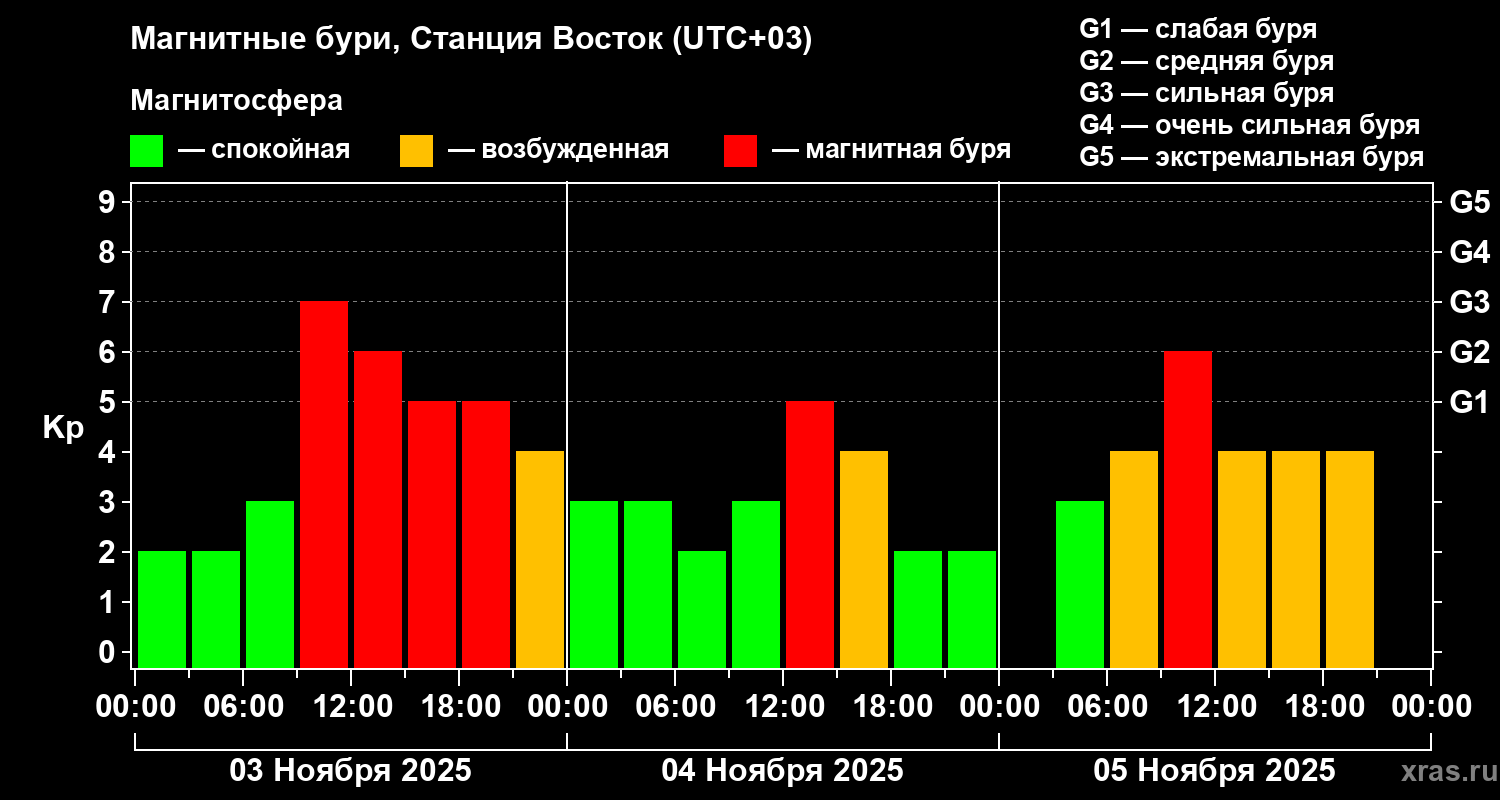 Магнитные бури локации Станция Восток 5 ноября 2025 года