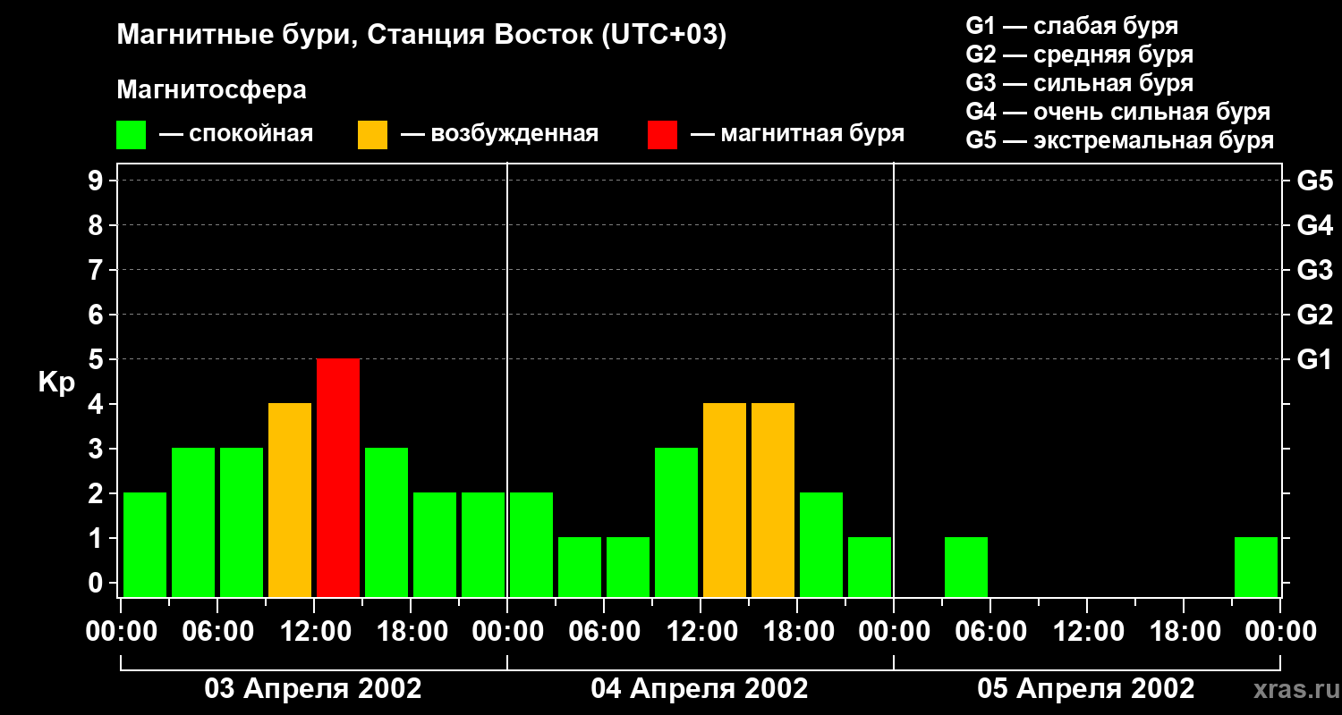 Магнитные бури локации Станция Восток — 5 апреля 2002 года