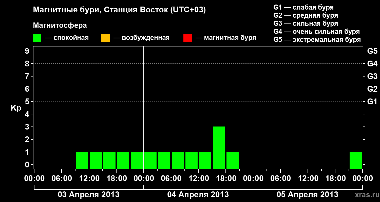 Магнитные бури локации Станция Восток — 5 апреля 2013 года