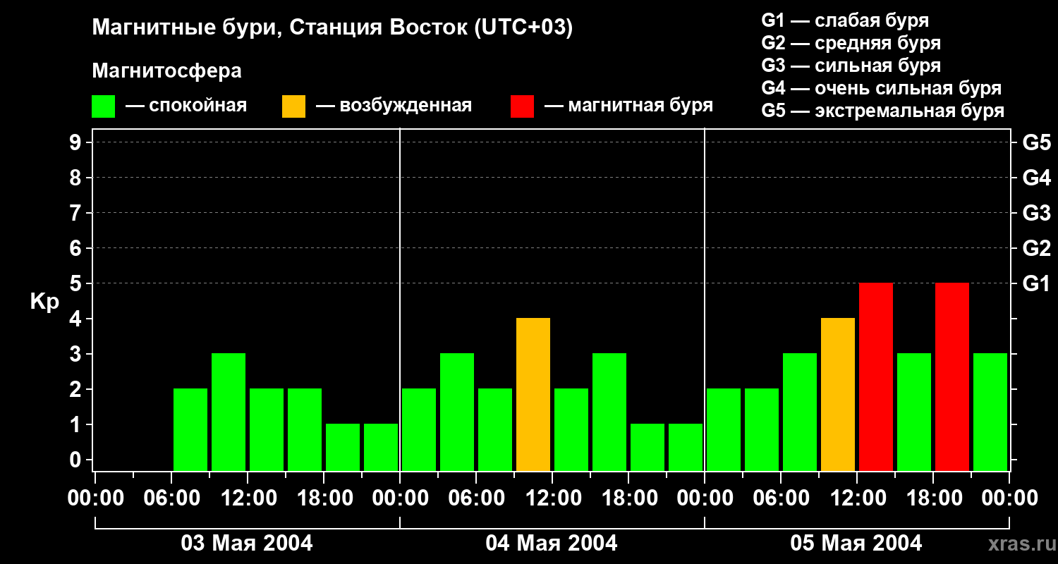 Магнитные бури локации Станция Восток — 5 мая 2004 года