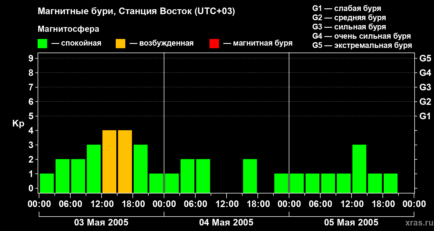 Магнитные бури локации Станция Восток — 5 мая 2005 года
