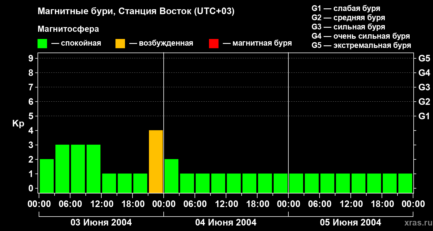 Магнитные бури локации Станция Восток — 5 июня 2004 года