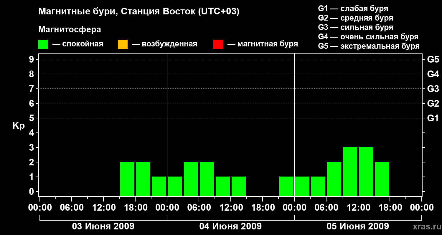 Магнитные бури локации Станция Восток — 5 июня 2009 года