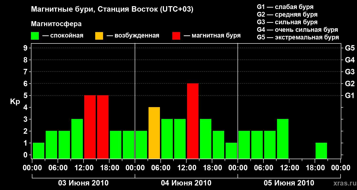 Магнитные бури локации Станция Восток — 5 июня 2010 года