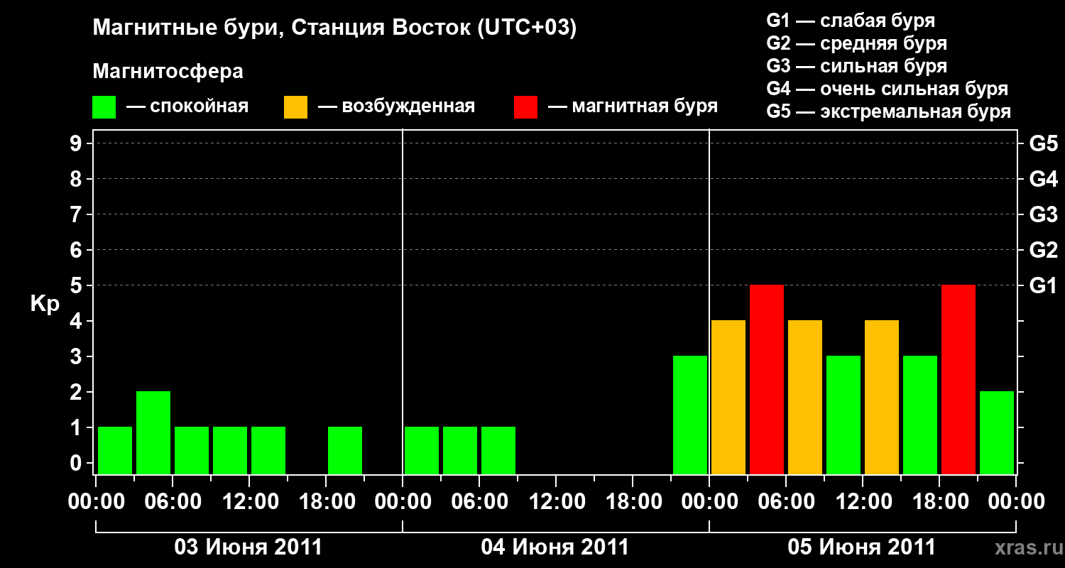 Магнитные бури локации Станция Восток — 5 июня 2011 года
