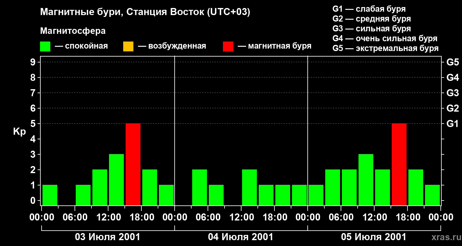 Магнитные бури локации Станция Восток — 5 июля 2001 года