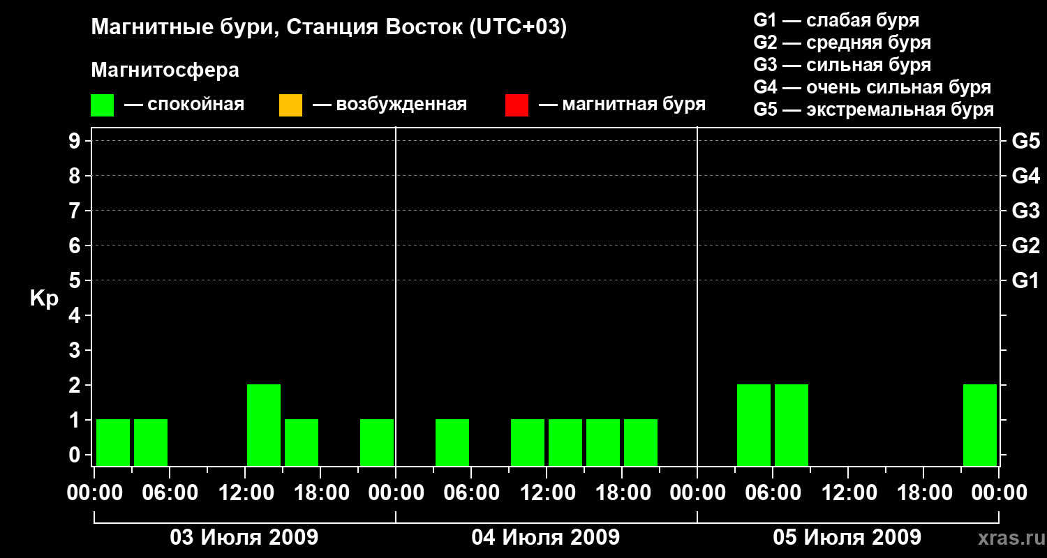 Магнитные бури локации Станция Восток — 5 июля 2009 года