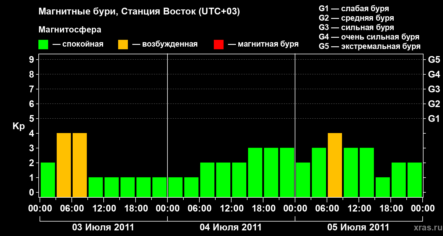 Магнитные бури локации Станция Восток — 5 июля 2011 года