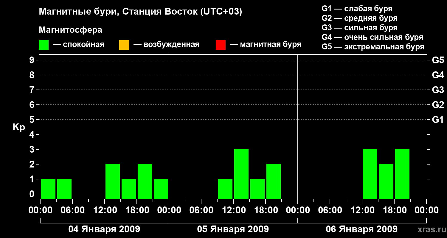 Магнитные бури локации Станция Восток 6 января 2009 года