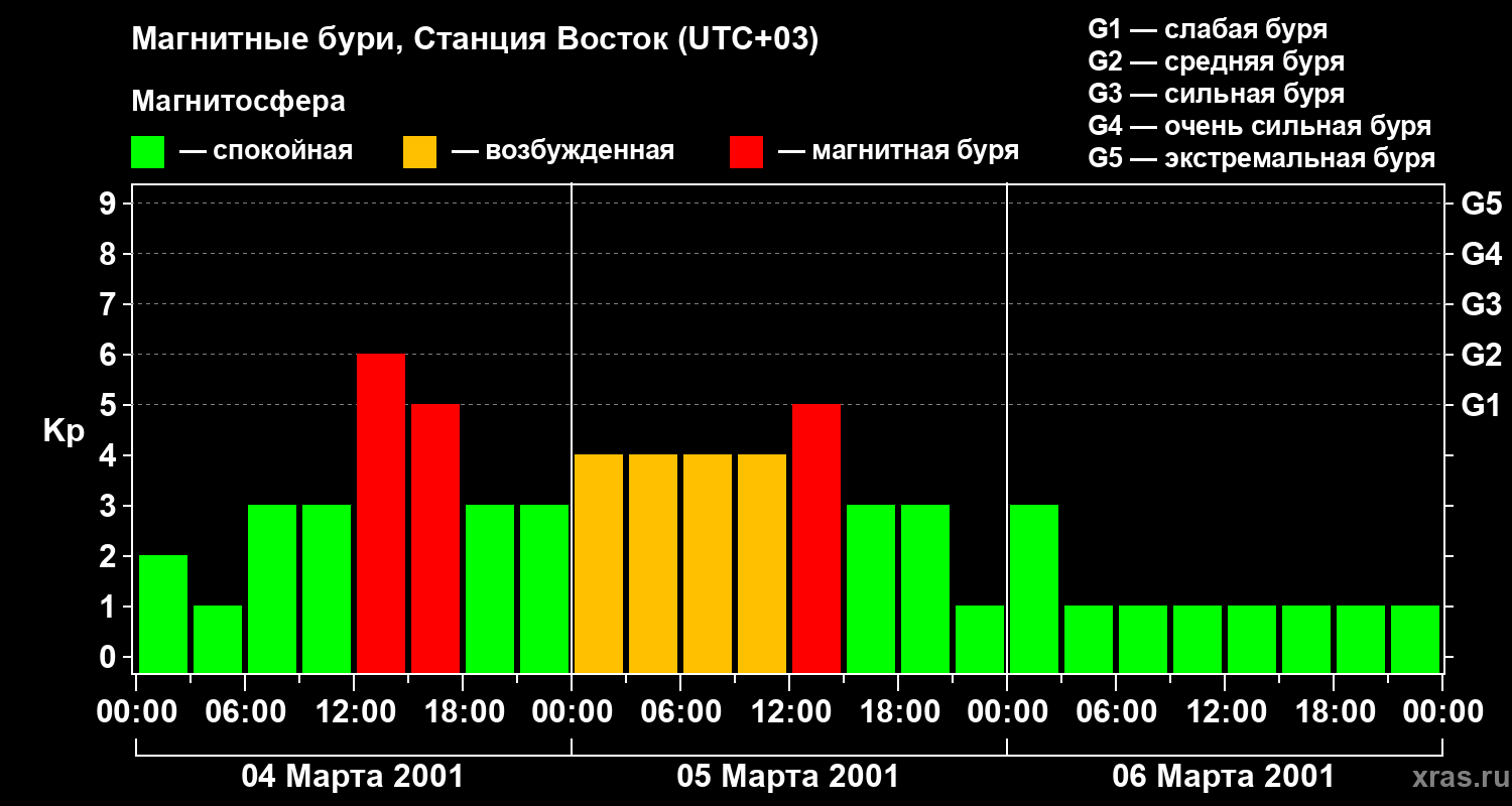 Магнитные бури локации Станция Восток — 6 марта 2001 года