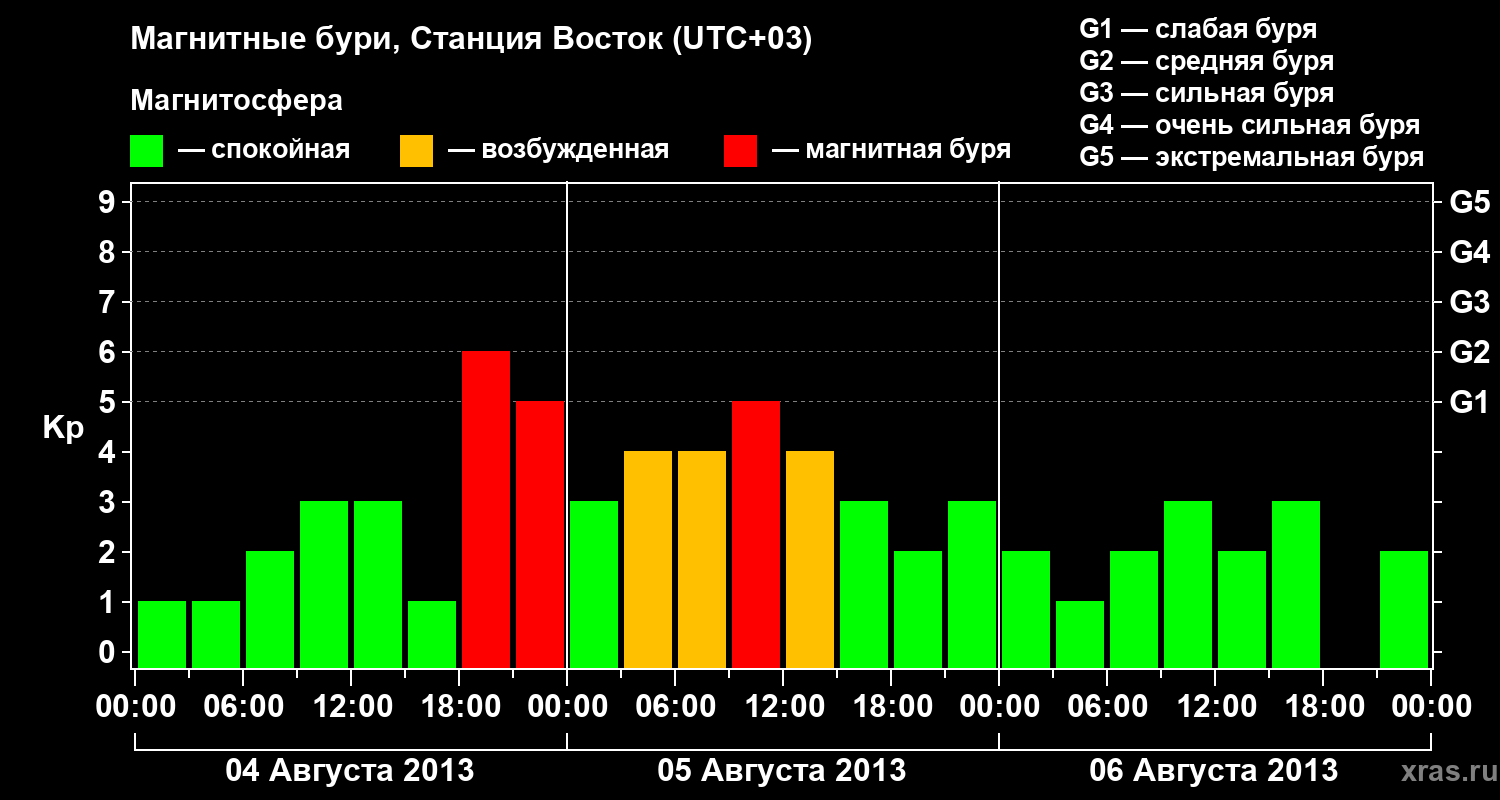 Магнитные бури локации Станция Восток — 6 августа 2013 года