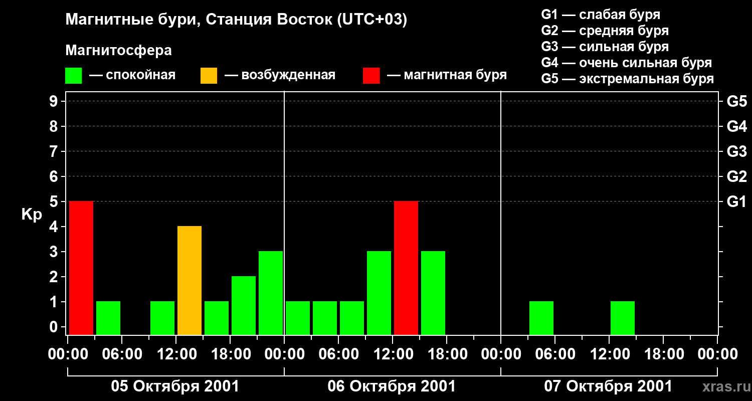 Магнитные бури локации Станция Восток — 7 октября 2001 года