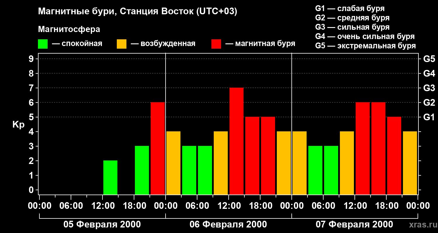 Магнитные бури локации Станция Восток — 7 февраля 2000 года
