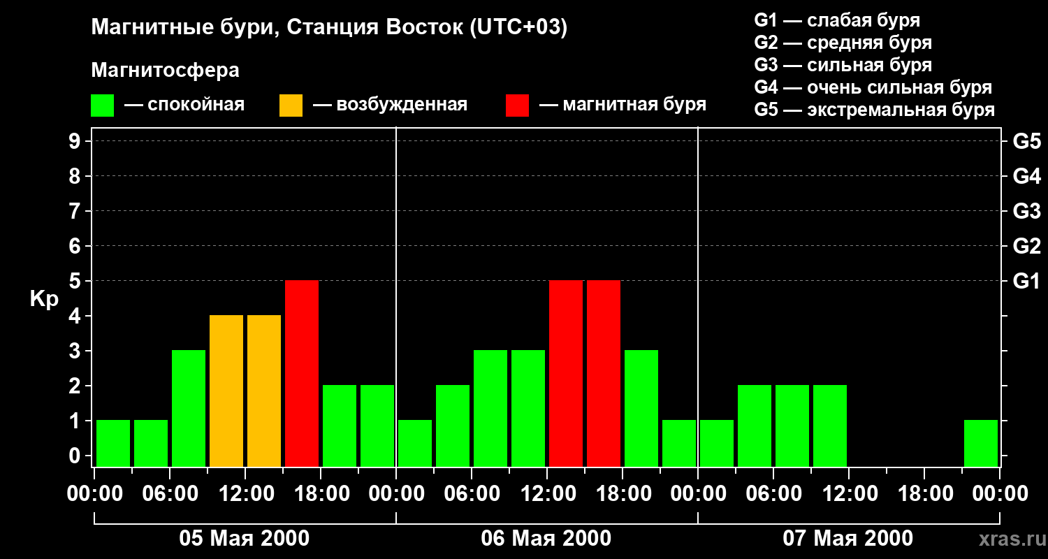 Магнитные бури локации Станция Восток — 7 мая 2000 года