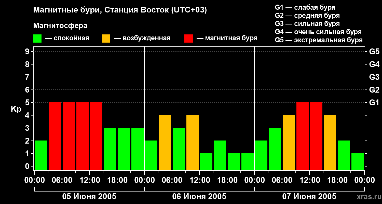 Магнитные бури локации Станция Восток — 7 июня 2005 года