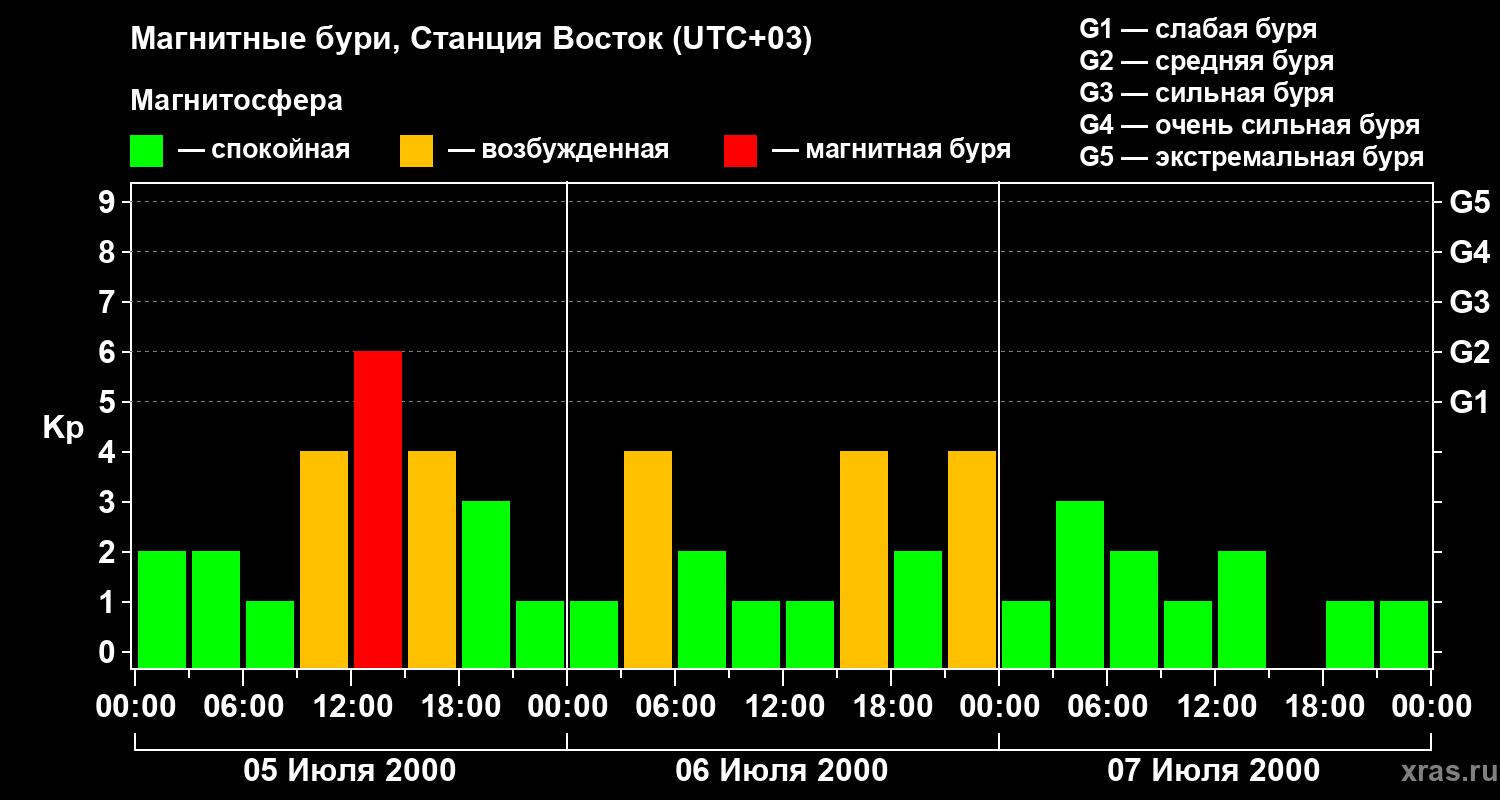Магнитные бури локации Станция Восток — 7 июля 2000 года