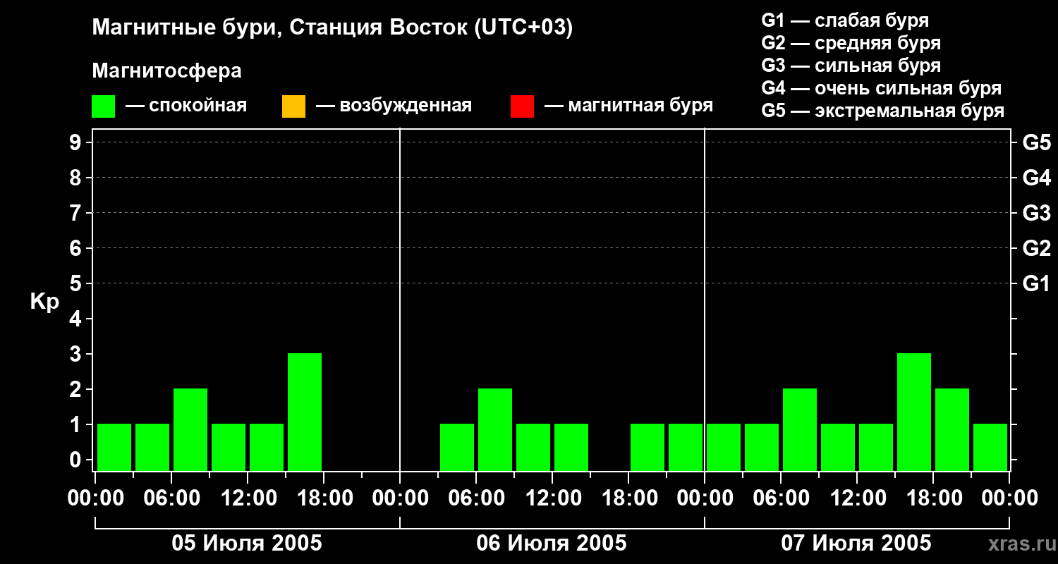 Магнитные бури локации Станция Восток — 7 июля 2005 года