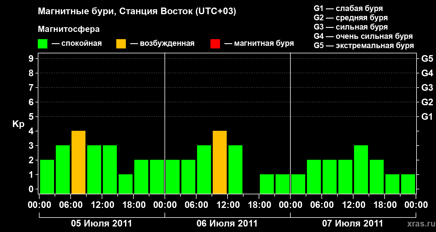 Магнитные бури локации Станция Восток — 7 июля 2011 года