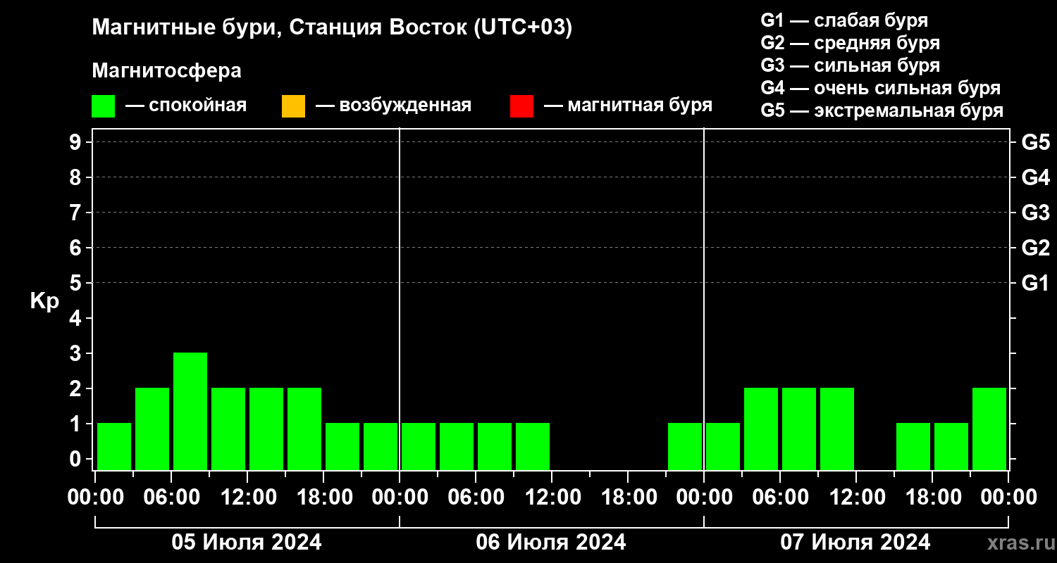 Магнитные бури локации Станция Восток — 7 июля 2024 года