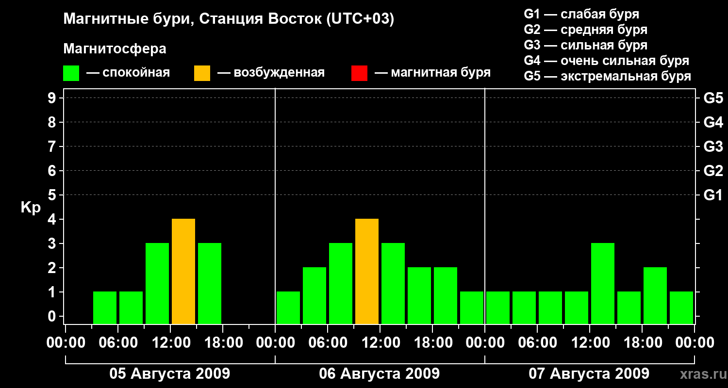 Магнитные бури локации Станция Восток — 7 августа 2009 года