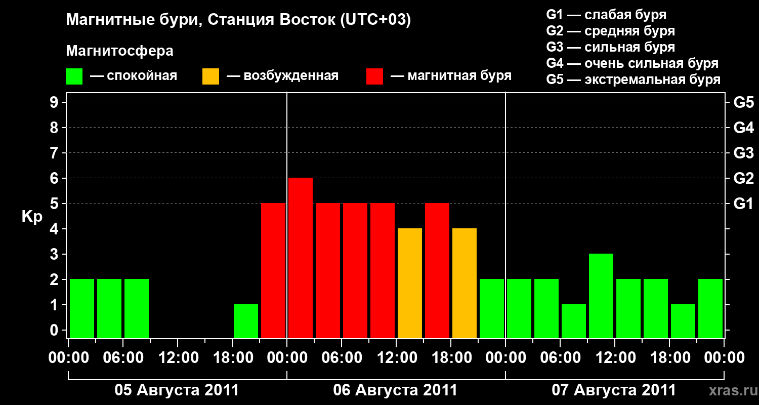 Магнитные бури локации Станция Восток — 7 августа 2011 года